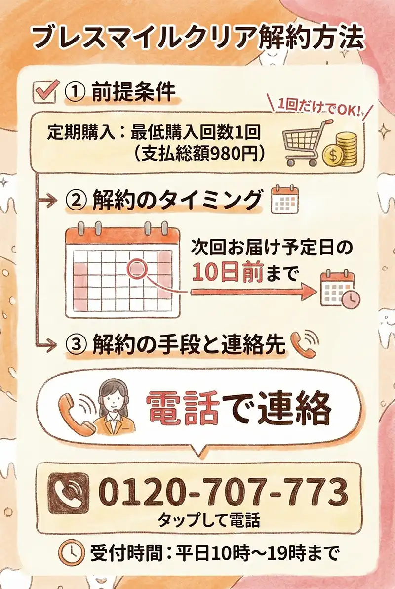 ブレスマイルクリアの定期コースは、解約の申し出がない限り、継続して商品がお届けされます。