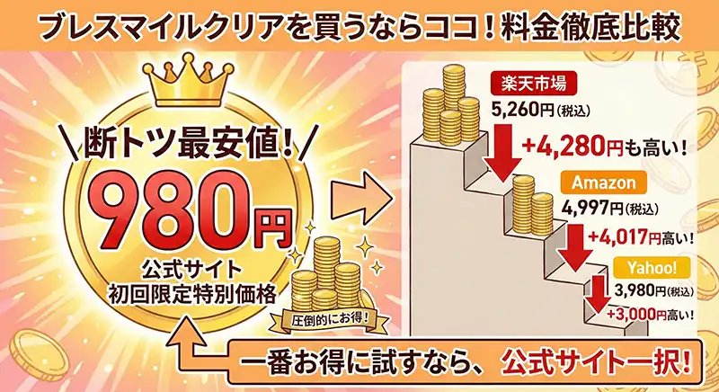 ブレスマイルクリアの最安値はどこ?公式、楽天、Amazonの価格を徹底比較!