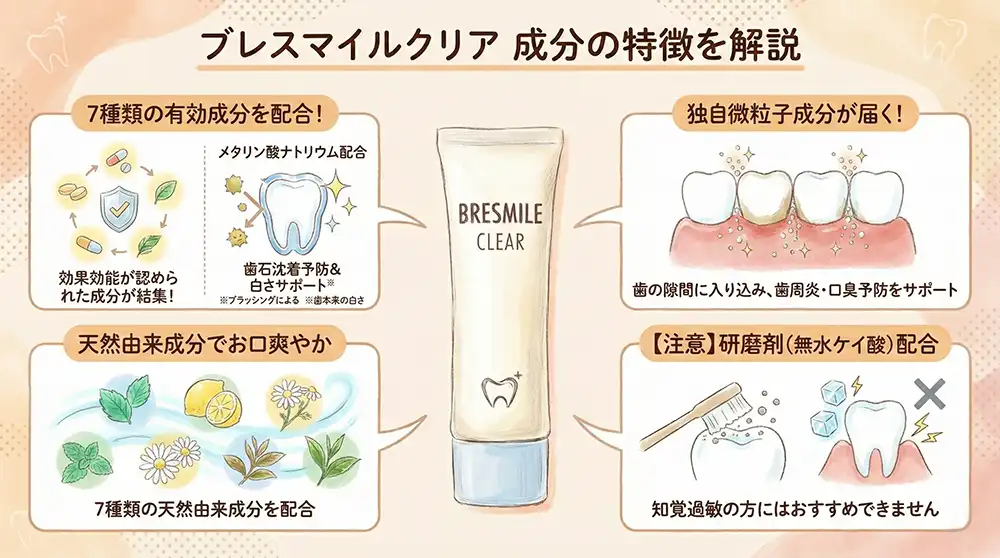ブレスマイルクリアに配合されている無水ケイ酸は、効果的な研磨剤として機能しますが、知覚過敏を持つ方にはおすすめできない特性を持っています。