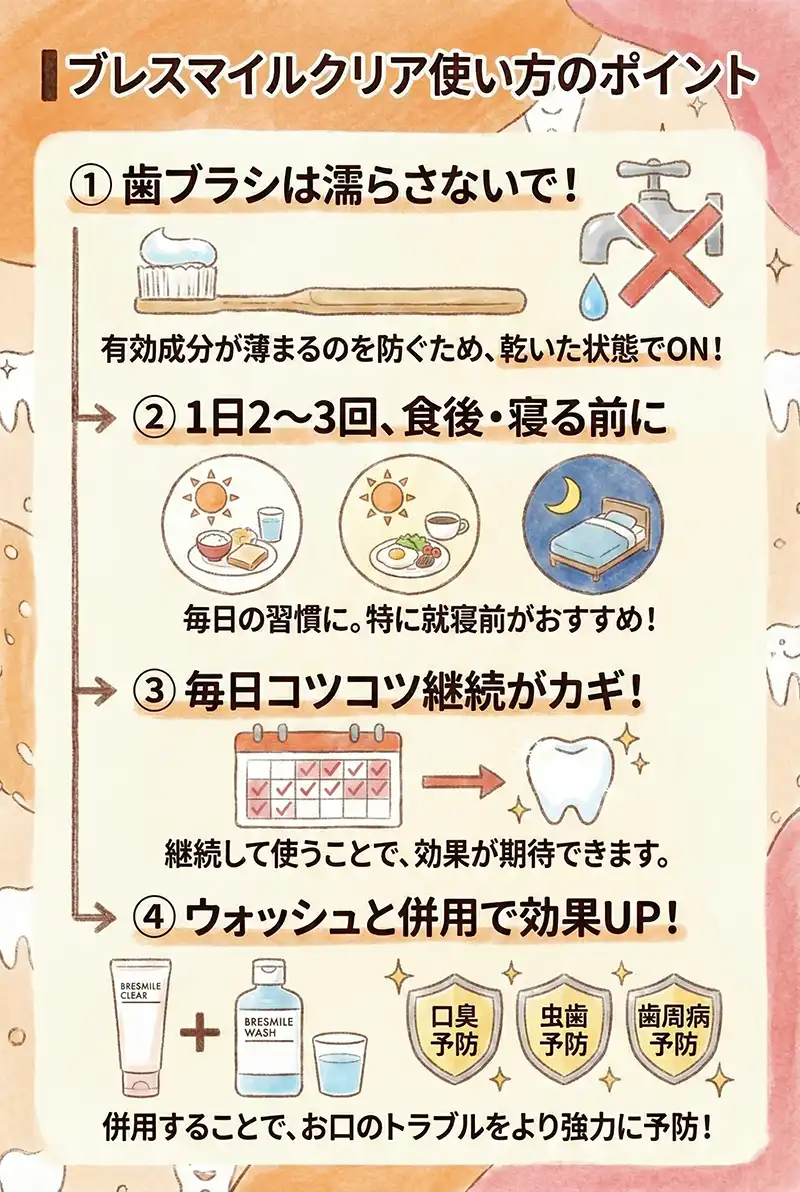 ブレスマイルクリアの効果を最大限に引き出すためには、正しい使い方が不可欠です。