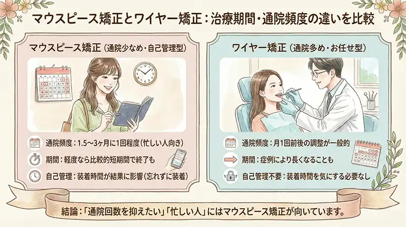 「通院回数を抑えたい」「忙しい人」にはマウスピース矯正が向いています。