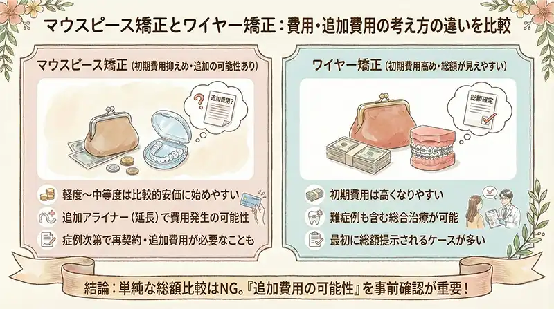 しかし、見た目・治療期間・費用だけを基準に治療法を選んでしまうと、「思ったほど前歯が下がらなかった」「途中でワイヤーに切り替えることになった」「追加費用がかかってしまった」といった後悔につながるケースも少なくありません。