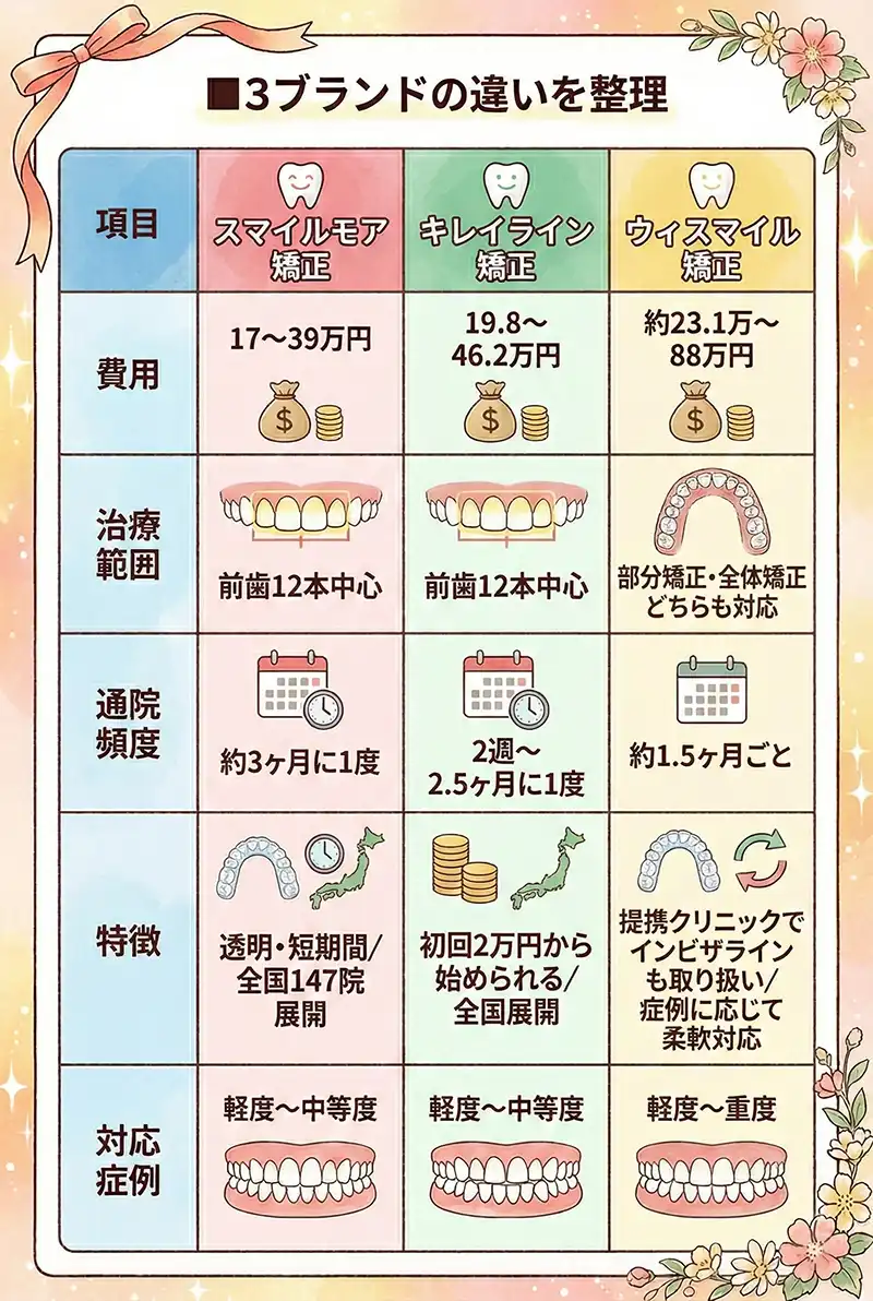 他ブランドとの比較【キレイライン・ウィスマイル矯正】