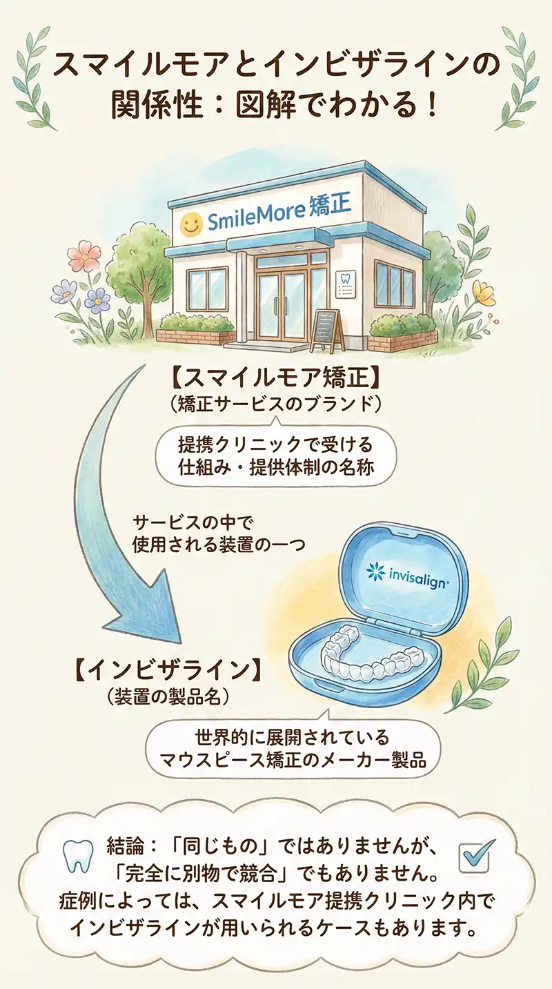 スマイルモアはブランド、インビザラインは装置の一種